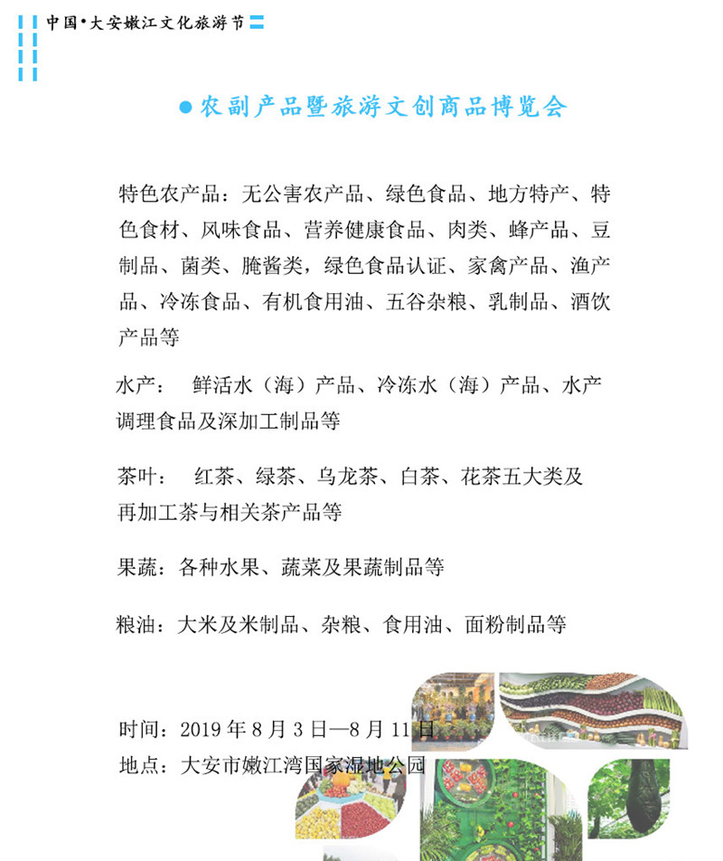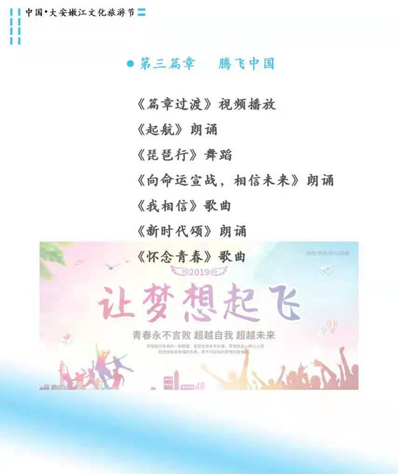 大安歷史文化底蘊深厚,豐富的歷史文化和現代文明熏陶,滋潤著這一方百姓。在市委市政府的領導下,我市的經濟建設和文化建設都取得了豐碩的成果。為了振興大安商品經濟,推動旅游產業的發展,打造優質旅游品牌,同時喜迎祖國70華誕,為祖國獻禮,特舉辦本屆文化旅游節。
